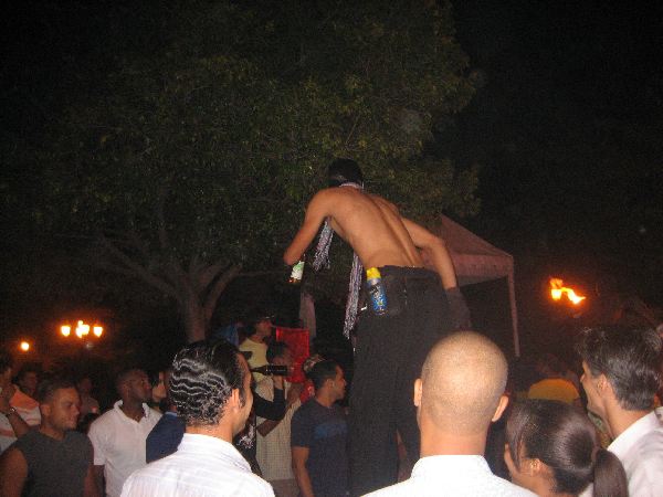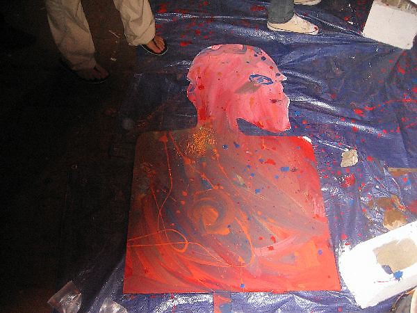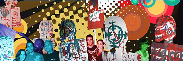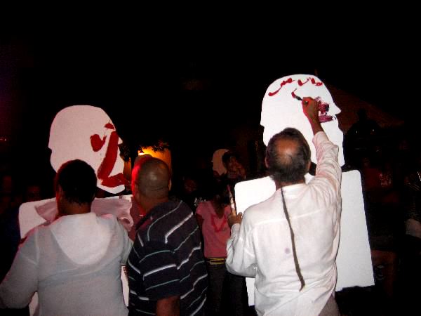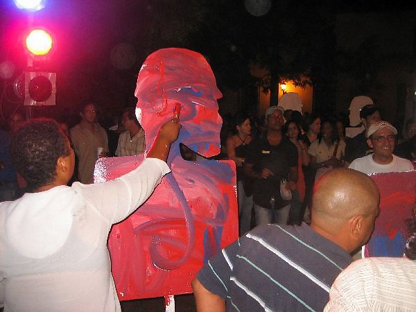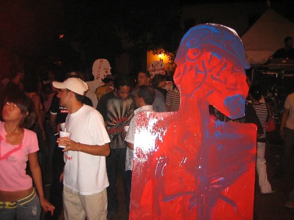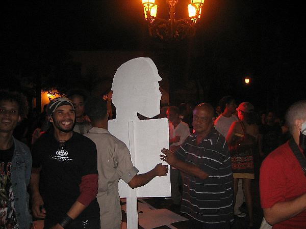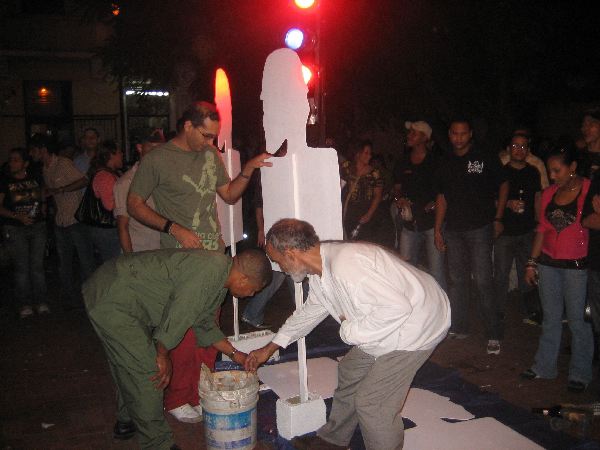 Además, la velada contó con un performance artístico-interactivo de consecuencias cataclísmicas. Dicho performance se basó en ofrecer al público estatuas de policías que construidas en madera y cubiertas en su totalidad por una capa de pintura blanca, fueron colocadas sobre unos pedestales en diversos lugares del parque, con el objeto de que la gente las pintara en vivo de acuerdo con su propio criterio e inspiración, pero partiendo de tres conceptos fundamentales: pax, amor y libertad.