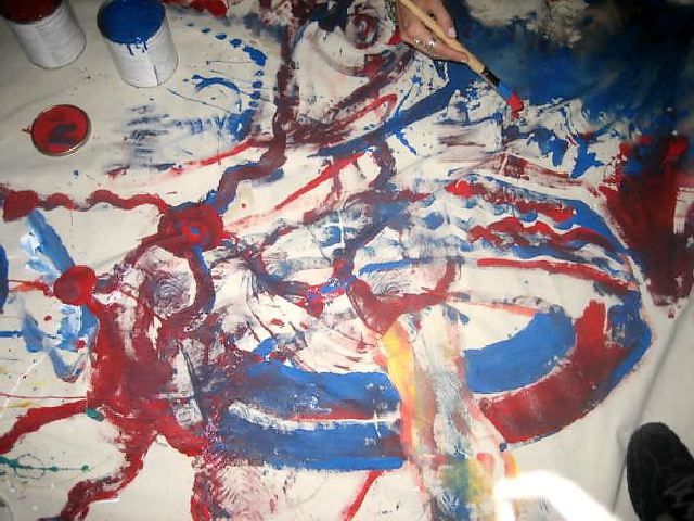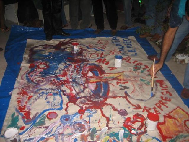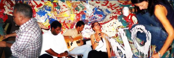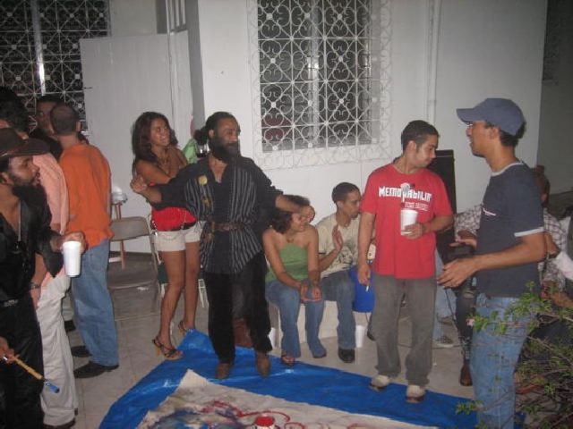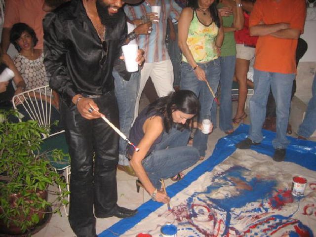 Para rematar la velada se colocó en el suelo un lienzo de proporciones colosales y se pusieron pinturas de diversos colores a disposición del público, para que éstos liberaran su nervio artístico a través del pincel. La intervención de dicho lienzo la lideraron los destacados creadores dominicanos Limber Vilorio, Gerard Ellis y Luis Reyes Guzmán, quienes vieron inmediatamente su efecto multiplicado sobre el resto de la audiencia. El resultado de este experimento estético fue un collage de deseos, frustraciones, angustias, pax, amor y libertad.