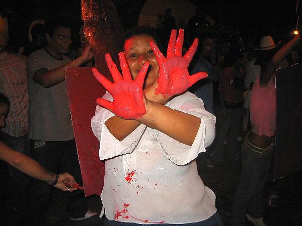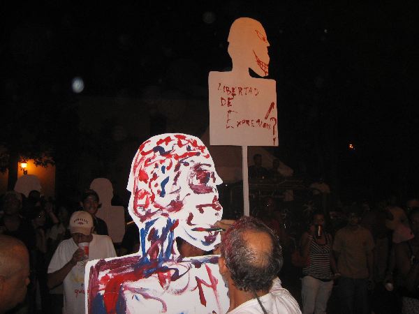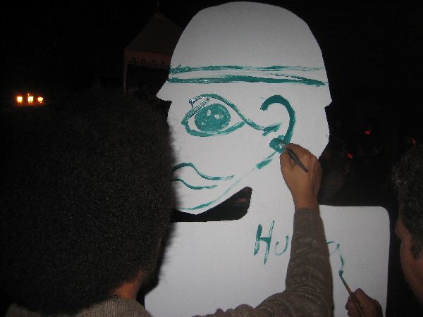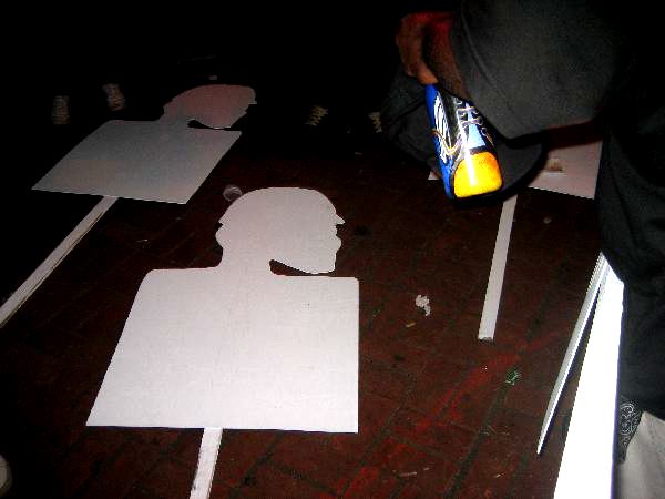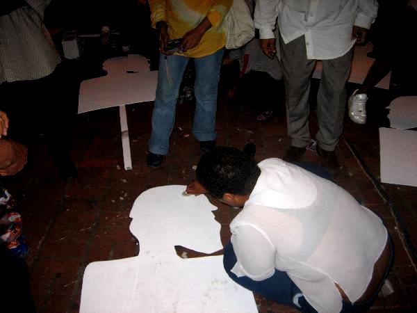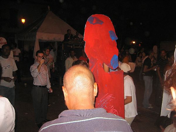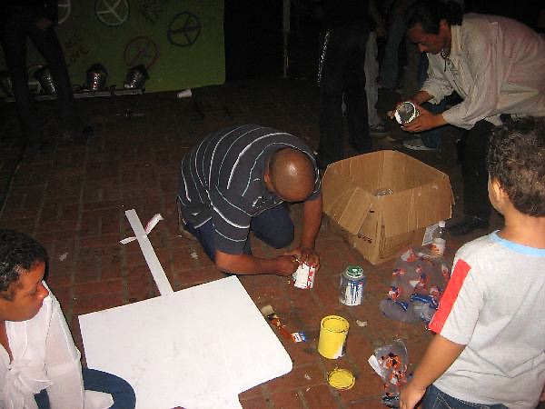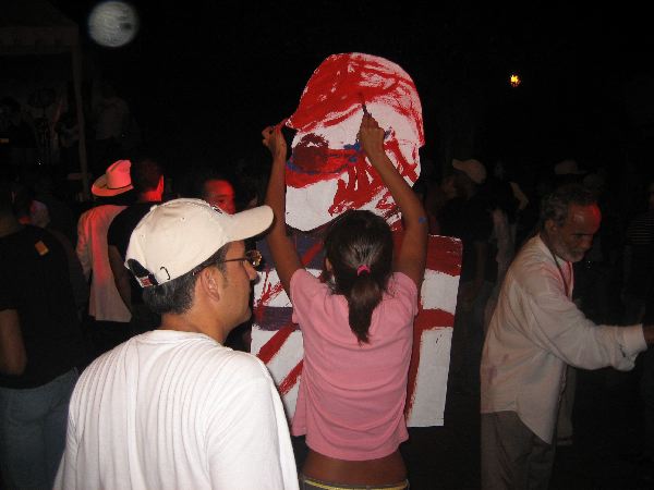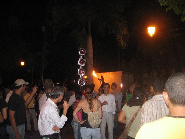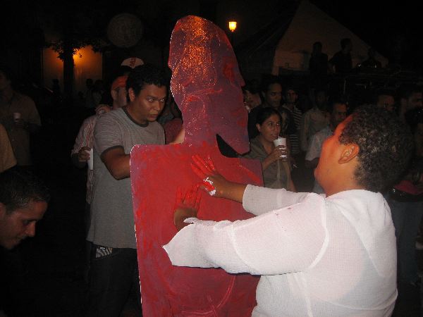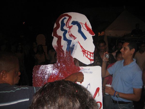 Además, la velada contó con un performance artístico-interactivo de consecuencias cataclísmicas. Dicho performance se basó en ofrecer al público estatuas de policías que construidas en madera y cubiertas en su totalidad por una capa de pintura blanca, fueron colocadas sobre unos pedestales en diversos lugares del parque, con el objeto de que la gente las pintara en vivo de acuerdo con su propio criterio e inspiración, pero partiendo de tres conceptos fundamentales: pax, amor y libertad.
